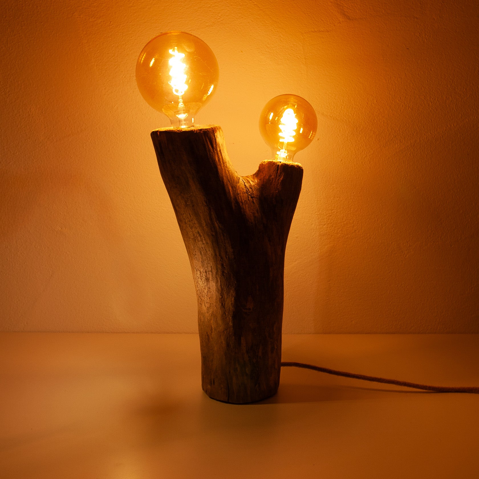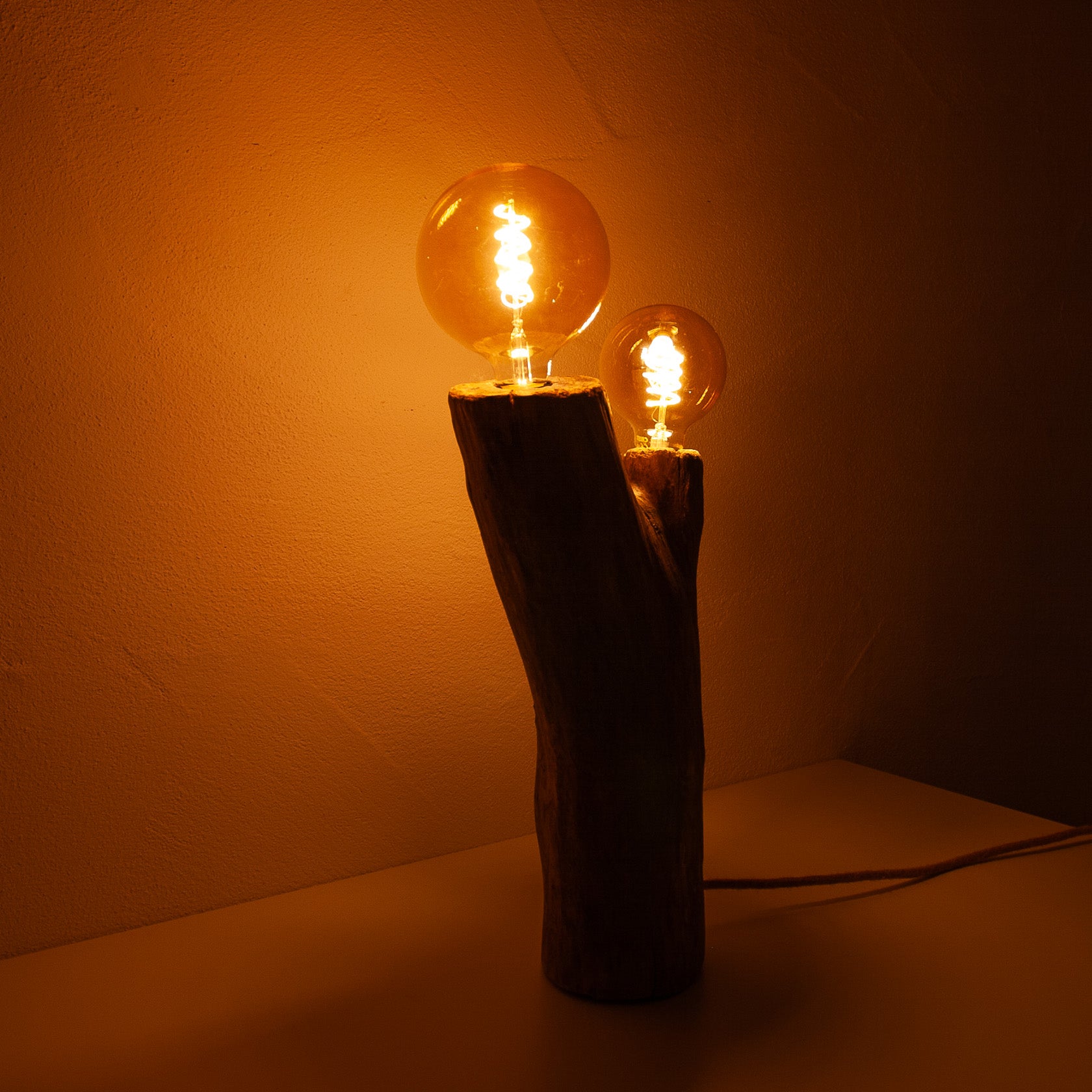 Ein einfaches Stück Treibholz vom Ufer des Bodensees, das ohne jede Bearbeitung eine wunderschöne Form aufweist. Dieser Fund war der Startschuss, um endlich mit dem lange gehegten Plan zu beginnen, aus tollen Unikaten Leuchten zu bauen. Die schwere, große Treibholzgabel ist auf den ersten Blick grob und kräftig, besticht aber durch ästhetische Proportionen. Ganz besonders ist auch ihre feine Zeichnung, die sich erst aus der Nähe erschließt.